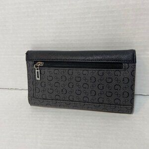 GUESS Women's Black Wallet Guess Logo embossed Zip Organizer vintage 1981 7653