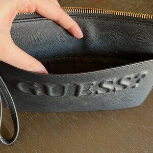 This GUESS wristlet is in great condition and was only used a couple of times. It’s a nice, roomy size with a front pocket for easy access and multiple card slots inside to keep things organized. The wrist strap makes it easy to carry, and the embossed logo adds a sleek touch.