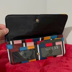 Never been used wristlet/wallet from Guess. Can hold multiple cards, coins, and an iPhone 14. Gold hardware. Beautiful and bold color.