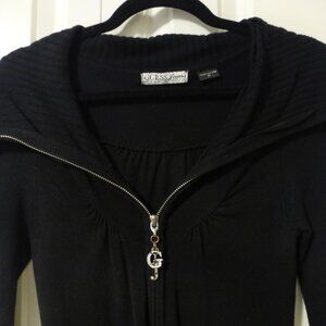 Note that a couple rhinestones on the zipper pull are missing but not very noticeable when worn. The zipper pull has also changed into a copper colour in some parts. Please see pics