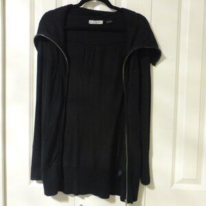 In good condition! Long sweater that covers your butt (I'm 5'0 for reference). Warm and comfortable! Minor fuzzing near the bottom especially on the INSIDE of the sweater.