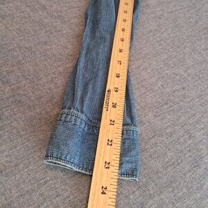 This classic Guess denim shirt is a versatile addition to any wardrobe, perfect for a relaxed, laid-back, western-inspired look. All buttons are Guess engraved. There is a slight sign of wear on the lower front (see photo #14).