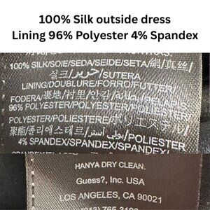 The outer dress is 100% Silk, while the lining is 96% Polyester and 4% Spandex.