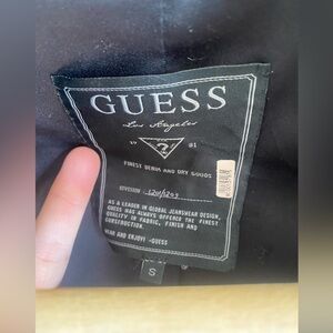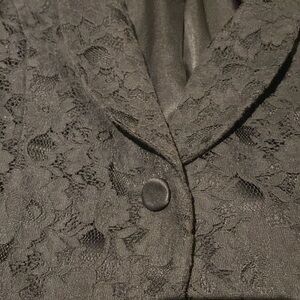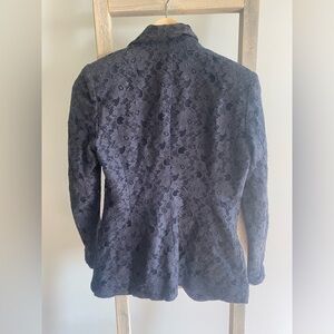 Euc woman’s size small guess black lace blazer. The blazer is a open breasted blazer with one button closure noted. 2 cute pockets on the fronts of the blazer. A very nice minimalistic peice.