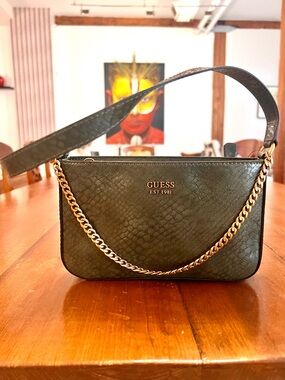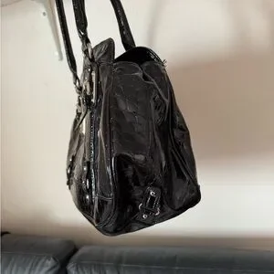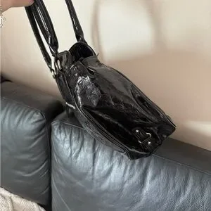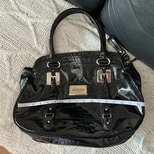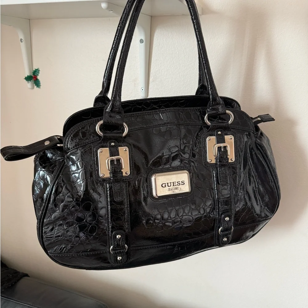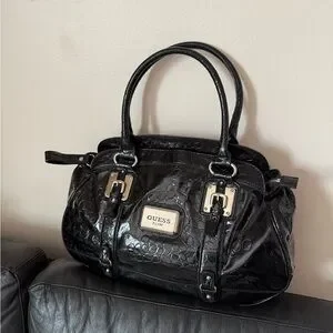 GUESS large vintage Black Croc-Embossed Patent Shoulder Satchel