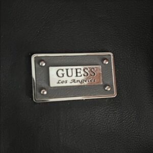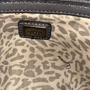 Elegant large sized GUESS handbag with dual handles. Features a stylish front pocket as well as multiple pockets inside. The interior lining is a gorgeous leopard print.