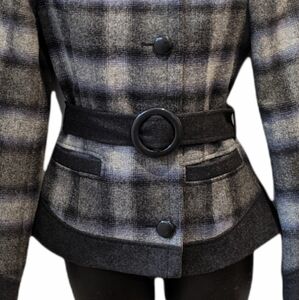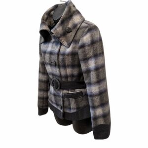 GUESS plaid wool blend belted jacket XS