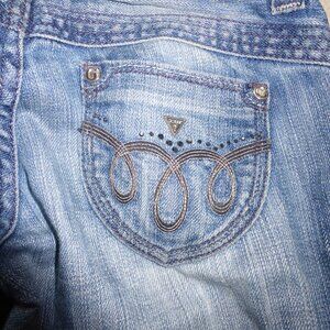 GUESS "premium denim" sparkly rhinestones medium wash bootcut jeans