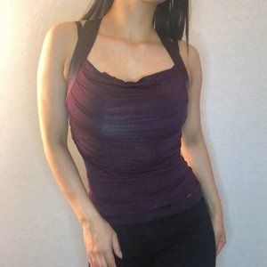 GUESS purple tank top w/ cowl neck & ruched front & racerback detail; fits true to size