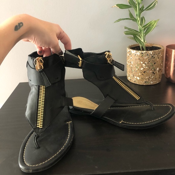GUESS zip up/buckle ankle strap flat sandals Gold hardware