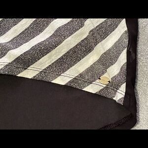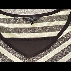 Guess sheer sparkly striped top size medium black white gold VGUC high low so cute on will fit large as well