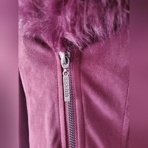 GUESS suede style cropped jacket with removable faux fur collar. Size small.
