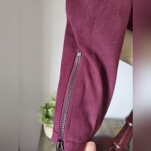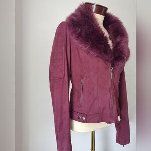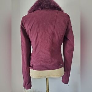 Really cute purple suede style cropped jacket. The faux fur collar can be removed via buttons. Fantastic condition. Zipper closure. size small