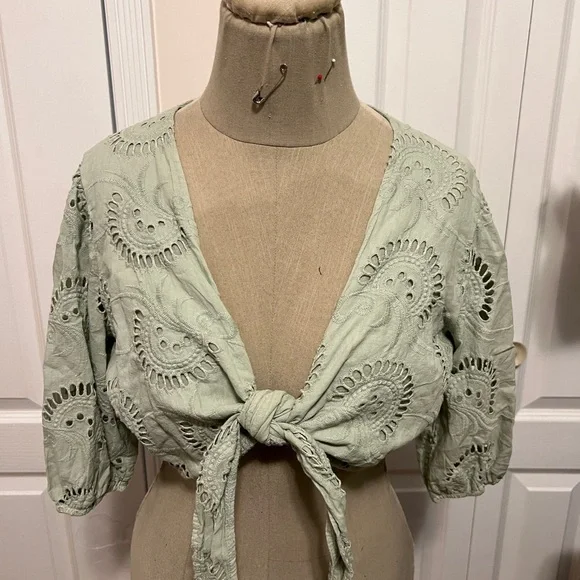 - size medium (fits small-medium) - cropped eyelet tie front top - brand new with tags - sage green - high quality, made in Italy - open to offers