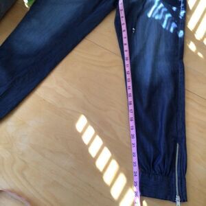 GUESS track pants lightweight blue denim pleated bottom zippers casual jeans XS