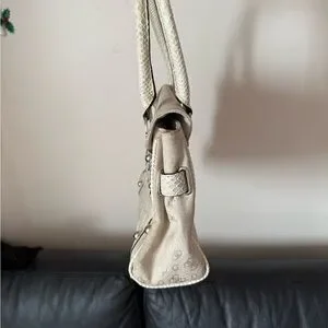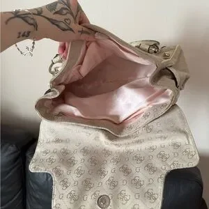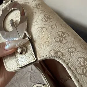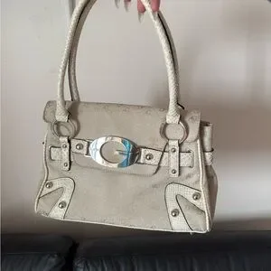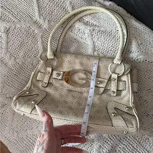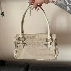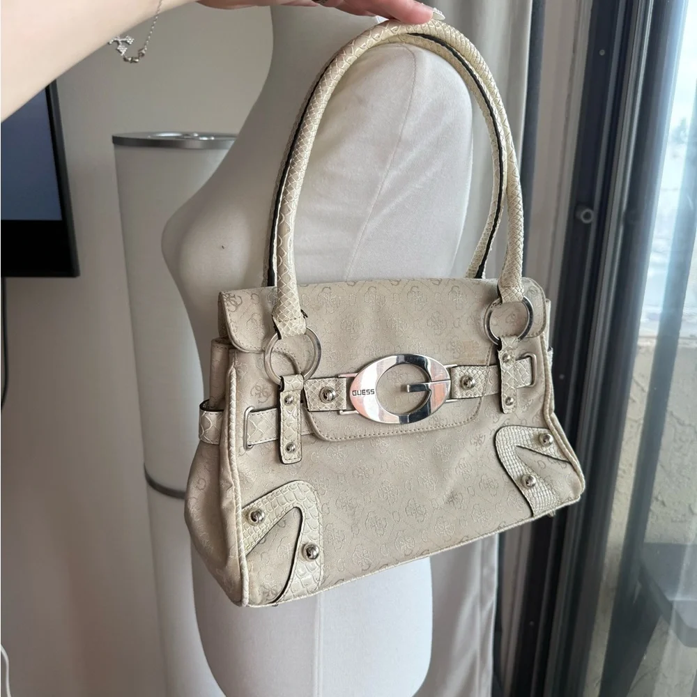 GUESS vintage Cream Logo-Embossed Shoulder Bag with Silver Hardware