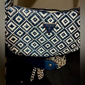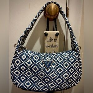 GUESS-Rianee-Blue and White Woven Purse-Comes W/Detachable Shoulder Strap-New