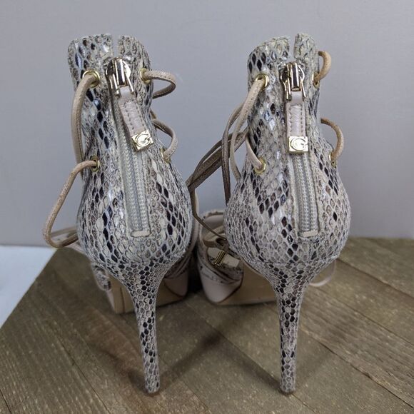 GUESS Snakeskin Strappy Heels – Size 6 – 5" Platform Stiletto