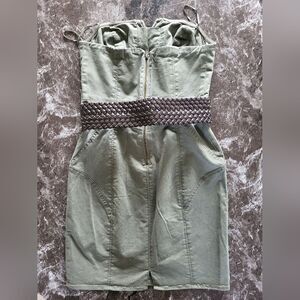 This gorgeous olive-green strapless denim dress by Guess comes with a brown braided belt ✨️