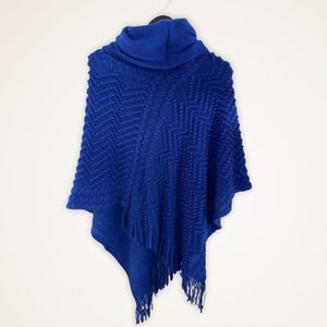 GUILTY COUTURE One Size Turtleneck Fringe Knit Poncho
