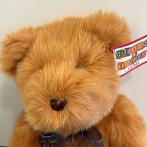 GUND Heads & Tales Plush Tan Bear -Fluffy Soft O5N86 Green Paisley Bow