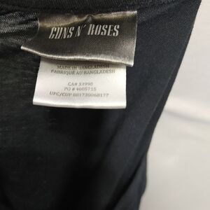 long sleeve t-shirt with an officially licensed Guns N' Roses graphic. Made from a soft, poly-cotton fabric blend. Has a pretty unnoticeable stain near the front bottom hem (see photo). Unseen when tucked in, or you can crop it or wear as is (seriously, no one would notice). In otherwise excellent condition. I believe this is a men's XL. See measurements.