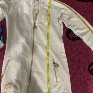 g-Unit white and gold light sweater in good condition. Size small been worn a couple times, but been sitting in the closet looking for a home that will get more use of it.