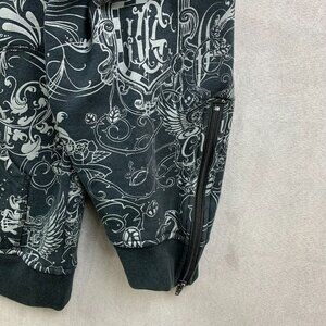 G-Unit Mens Sweater XL Black Red Hoodie Full Zip Embroidered Tattoo Rose Y2K Rap