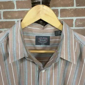 Excellent condition!! Pale brown striped dress shirt with one chest pocket.