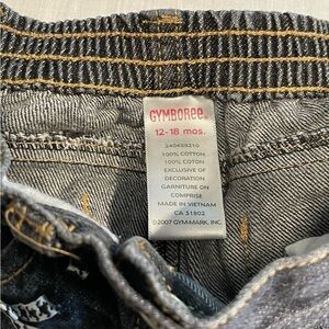 GYMBOREE Bow Puppy and Cat light black jeans with faux fur trim. 12-18 months.