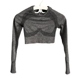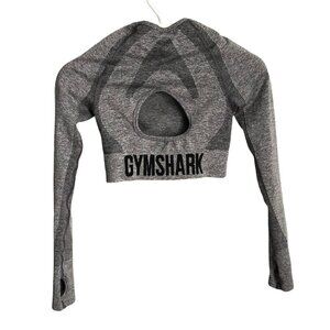 GYMSHARK Heathered Gray Cropped Compression Long Sleeve Top Cut Out Back Size S