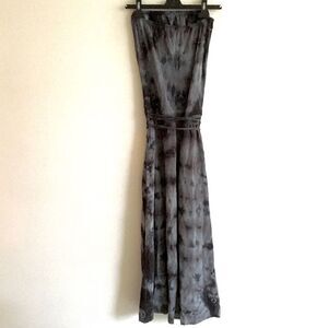 GYPSY 05 silk tie-Dye boho strapless maxi dress blue grey M