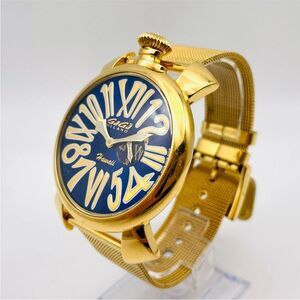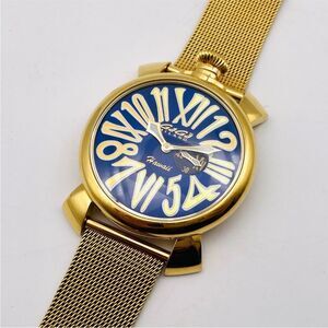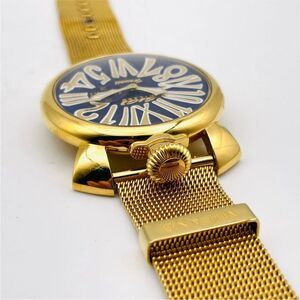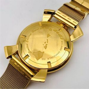 Rare authentic Gaga Milano Manuale 46 Limited Edition Hawaii wristwatch. The 46mm, with its slim 10mm thickness, is a real object of style. The rich gold tone Milanese mesh strap evokes the craftsmanship of the past, widespread in Milan.