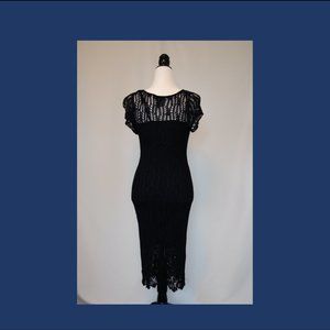 Gabby Skye Cap Sleeve V-Neck Crochet Lace-look Dress with Slip - Navy - Medium