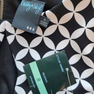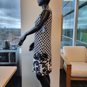 Gabby Skye Dress Black & White Keyhole Neck Floral Hem