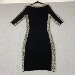 Gabby Skye Sweater Dress Sz Medium Knee Length Half Sleeve Black / Leopard Print