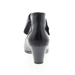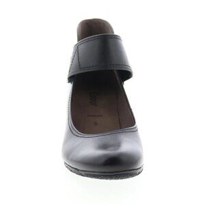 This modern Mary Jane style pump features a sleek leather upper lined in soft breathable leather for enhanced comfort. An adjustable strap with Velcro closure ensures a secure custom fit while a durable synthetic outsole provides lightweight flexible traction. A stacked heel ensures stability.
