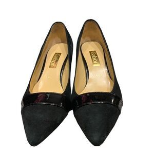 Gabor leather pumps in amazing used condition has next to no wear. Leather outside accented with a patent leather across the toes and shiny heel so beautifully designed, very classic. There is a microscopic dot on the one shoe may not be anything to mention and is absolutely not noticeable, some creases on the one inside shoe other than that they are in excellent used condition. The size says 5.5 uk may fit more like 7.5-8. Please look at photos shown for reference.