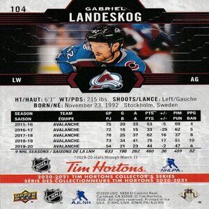 Gabriel Landeskog (Colorado Avalanche) 2020/2021 Tim Hortons Collector's Series