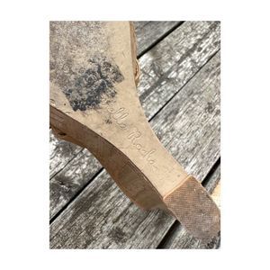 The insole is clean with no significant flaws to note. The heel wedge shows several nicks in the material, see photos. Pet and smoke-free studio.