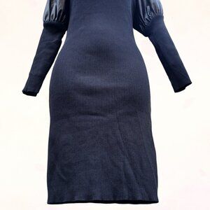 Gabrielle Union Black Bodycon Ribbed Knit Faux Leather Puff Long Sleeves Dress S