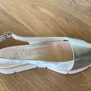 Gorgeous silver Gadea sling back shoes - made in Spain. Worn for a half hour in the house, but just too tight for me! Was $200 new in box. SIZE 36. Would consider trading for something equally great. LOVE these shoes and so disappointed that they don’t fit!!