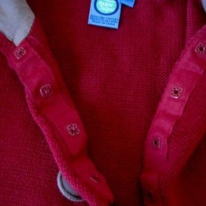 Gagou Tagou infant hooded knit cape. Color: Red/ Light Brown. SIZE: 12/24 M. Features: