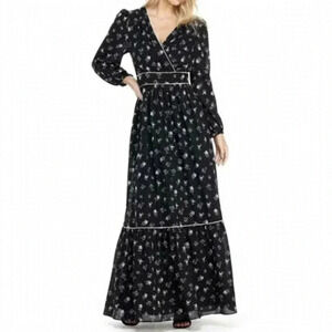 Gal Meets Glam Ariana Floral Long Sleeve Chiffon Maxi Dress Sz 2 NWT