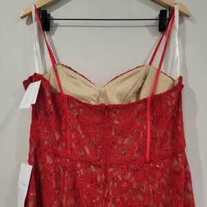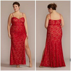 Galina Signature Allover Lace Corset Sheath with Side Slit Size 18