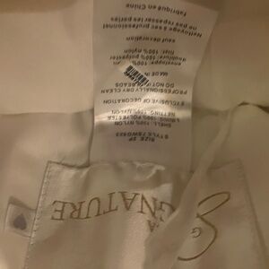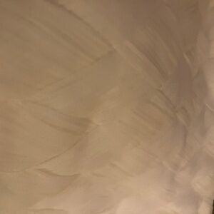 Color is crisp white, no damage or stains, but the second loop for the hanger to be hung is cut. That’s all! Hence I laid it down :)