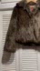 Chic faux fur jacket by Gallery. Features a plush, textured design. Perfect for warmth and style. Size small but would definitely work for a larger size ptp is 19” has 3 eyelet clips on front