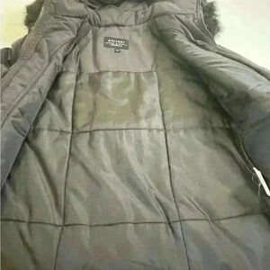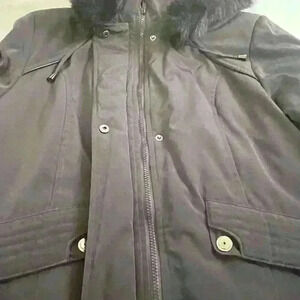 Gallery Faux Fur Zipper Button Down Winter Coat in Black size 10
