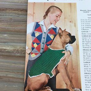 Vintage from 1952 "Gallery of Knitting: New Easy to Make Gift Ideas" booklet #89 by American Thread Company. Booklet contains a wide variety of projects to make: vest, dolls, dog coat, trivet, apron, bags & more. Color photographs illustrate finished items. Vintage condition: paper cover has heavy wear with a split along spine edge, creasing to page edges. No missing pages. 15 pages, 7 1/2" x 10 1/2".