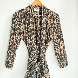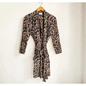 Ganni Animal Print Long Sleeve Wrap mini dress S/M
